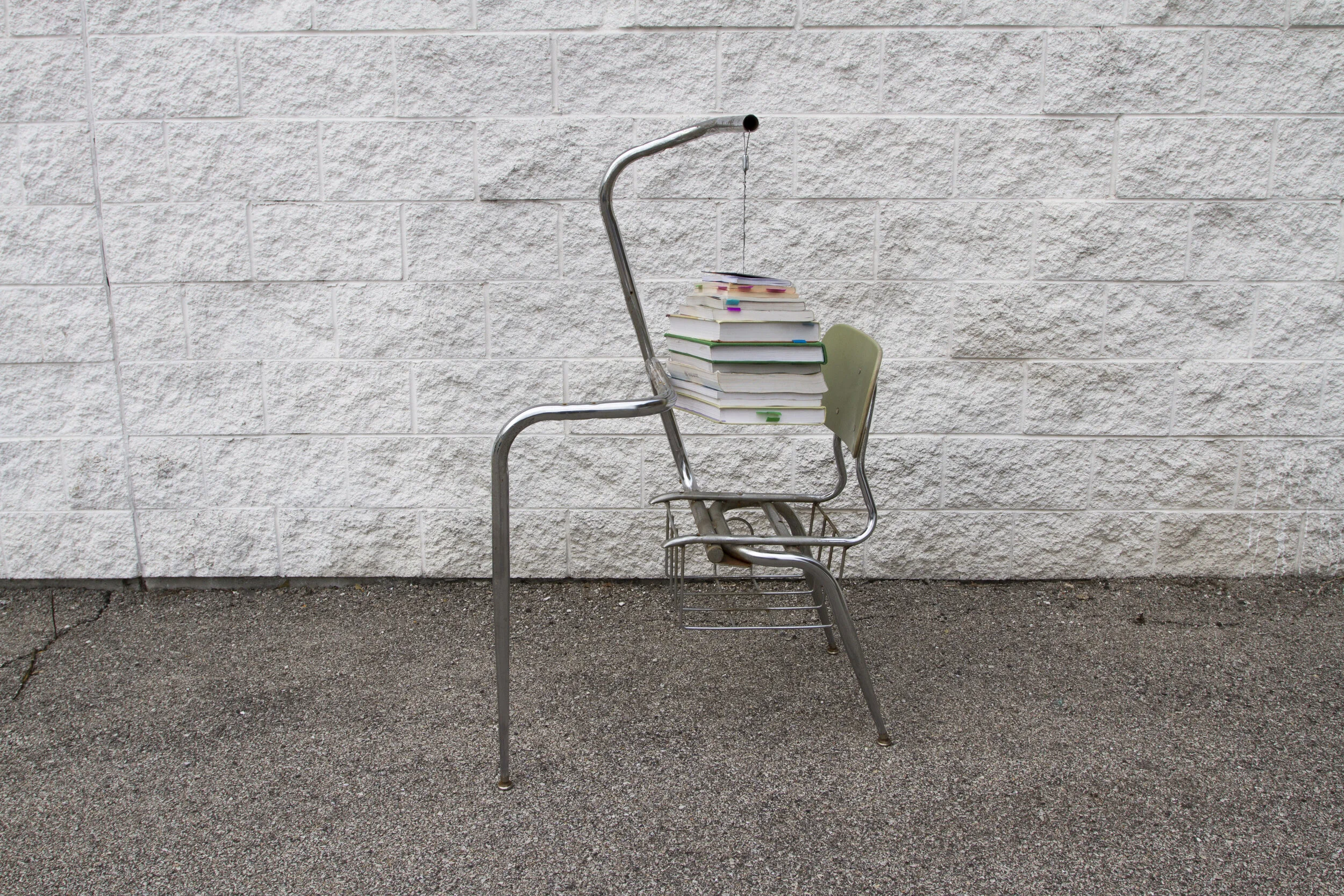 Distant Pull, 2017, two chairs, t-shirts, yarn